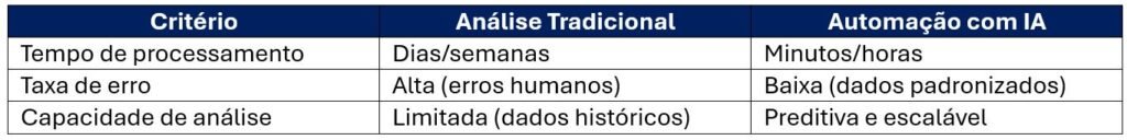 Historicamente, a análise contábil era feita de forma manual, exigindo horas de trabalho para extrair e interpretar dados financeiros. Com a inteligência artificial, esse processo se torna significativamente mais rápido e preciso. Veja a diferença: