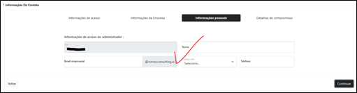 Em qualquer opção escolhida, o usuário deverá preencher todos os dados, especialmente o e-mail. É nesse endereço de e-mail que serão enviados a nota fiscal de serviços e o link para o primeiro acesso à ferramenta. Recomenda-se verificar também a caixa de SPAM. Durante o processo de aquisição o e-mail informado pode ser pessoal ou corporativo, porém, durante o cadastro, parametrizações e acessos na plataforma ROMEO.AI, serão aceitos apenas endereços corporativos.
