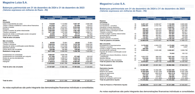 • Ativo: Disponibilidades (caixa e equivalente de caixa)