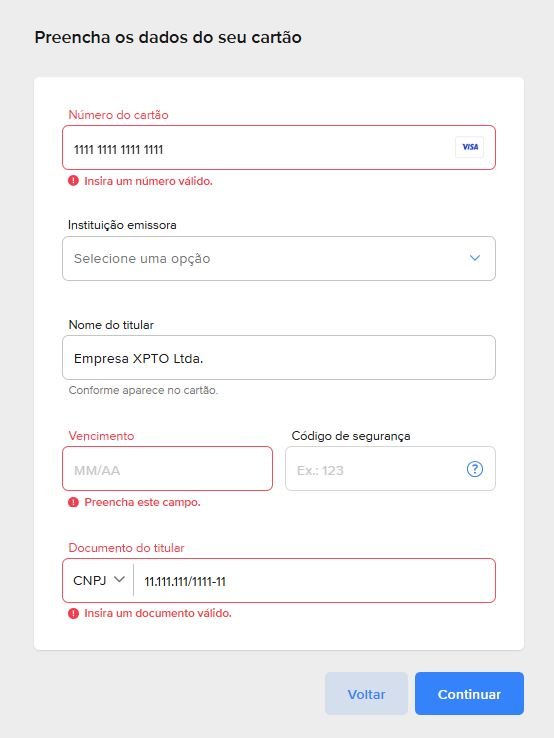 • Uso de Secure Fields (campos seguros em iframes), que registram os dados do cartão diretamente nos servidores do Mercado Pago, evitando que tais dados trafeguem pelo seu sistema;