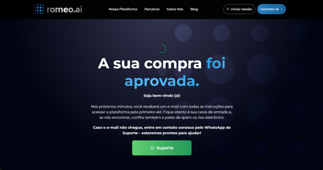 Ao clicar no link “Voltar para ROMEO AI”, você será direcionado para a seguinte página do website da ROMEO: